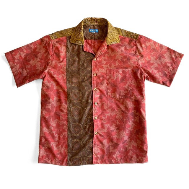 紅葉と菊と桐の花モスリンアロハシャツ【L】