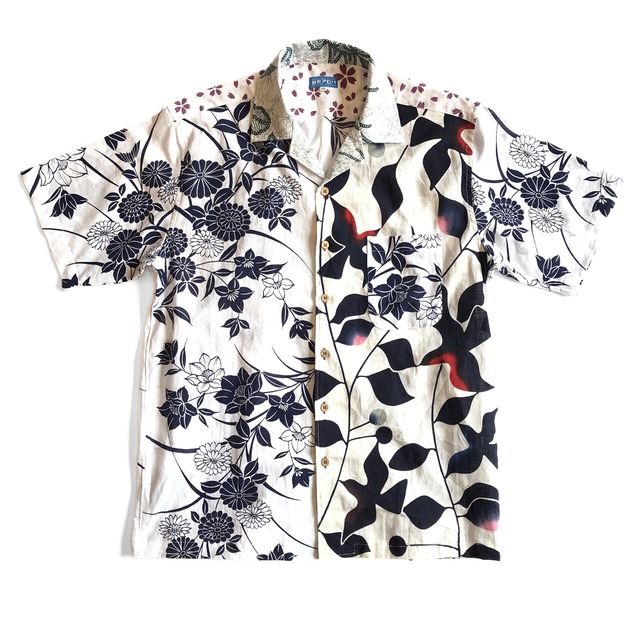白地に菊と桜のお相撲浴衣地アロハシャツ【L】