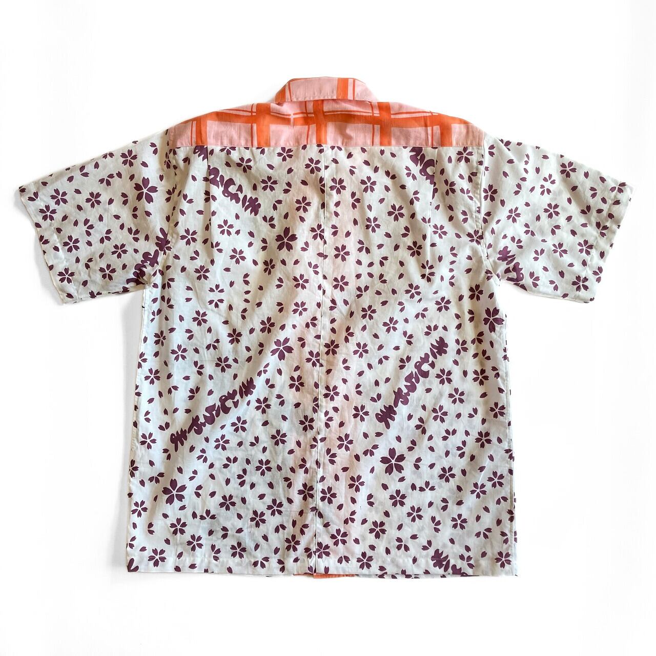 白地に衿ピンクのお相撲浴衣地アロハシャツ【L】