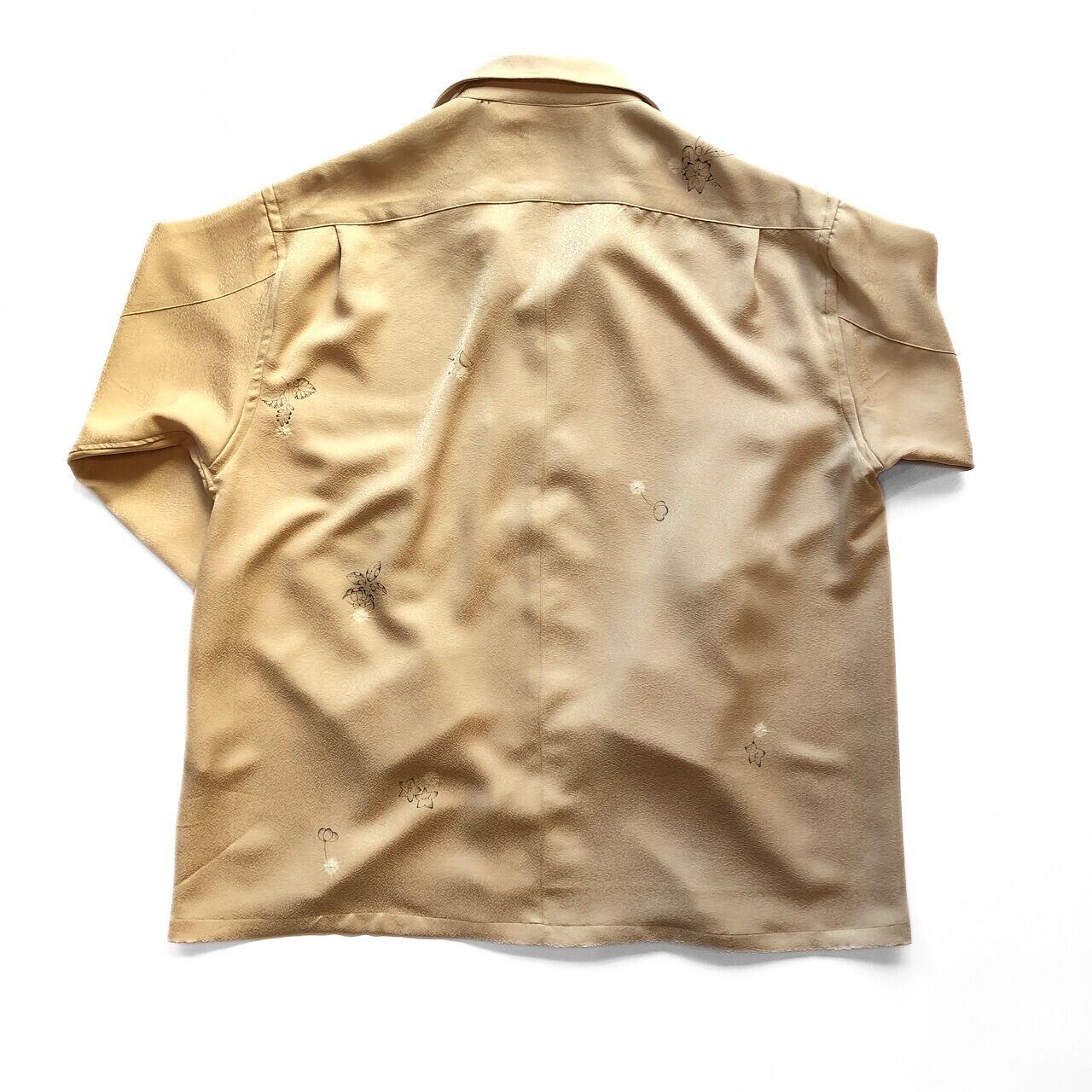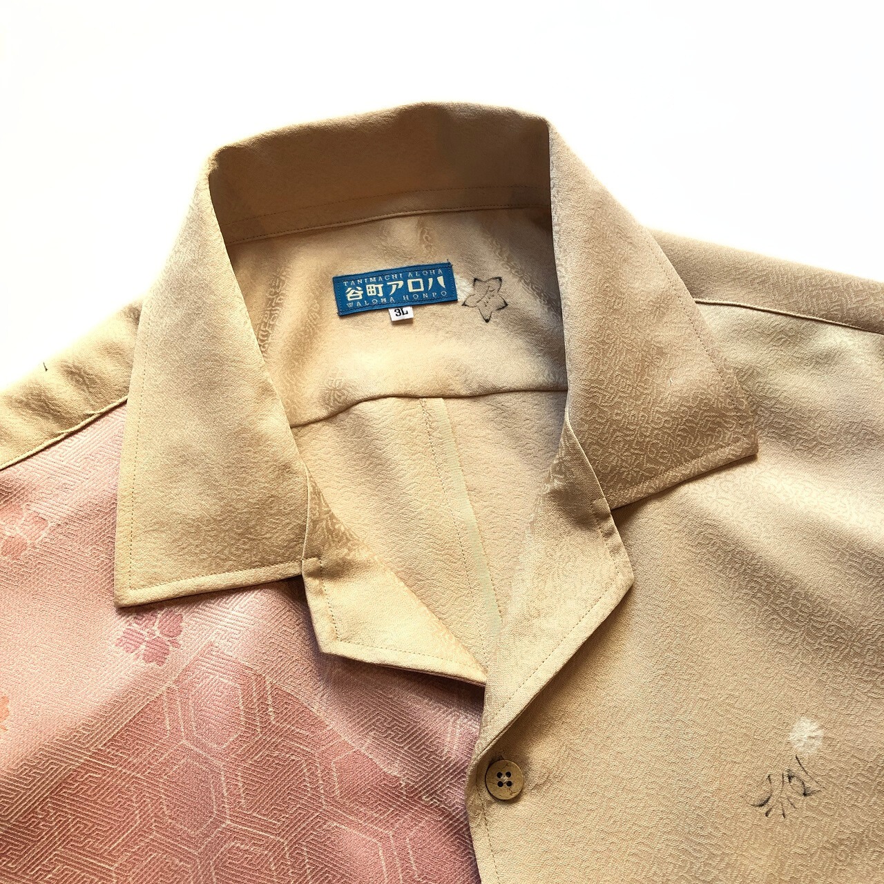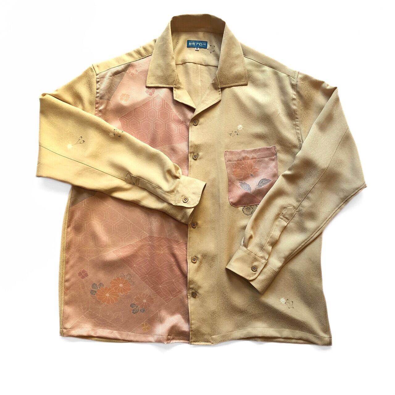 ベージュとピンクの綸子長袖アロハシャツ【3L】