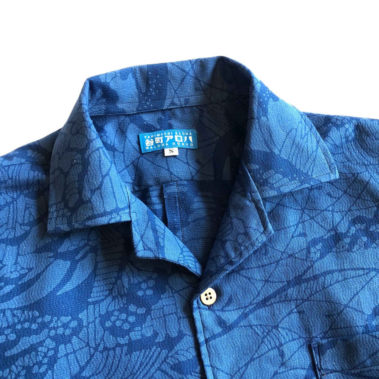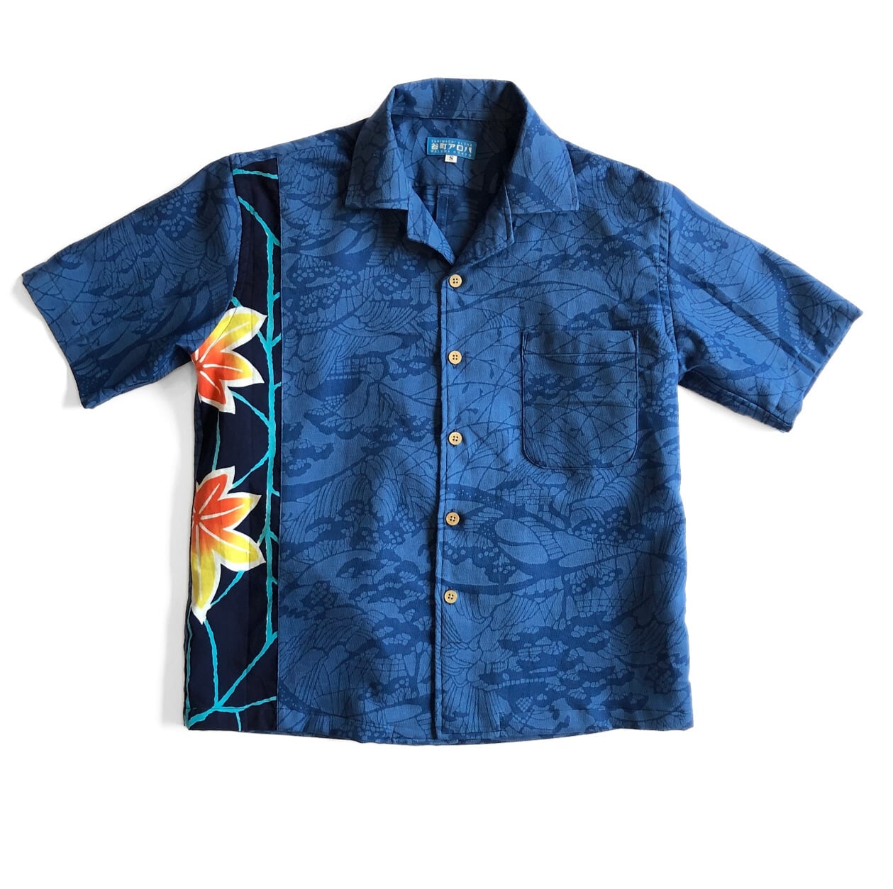 青い浴衣地ミックスアロハシャツ【S】