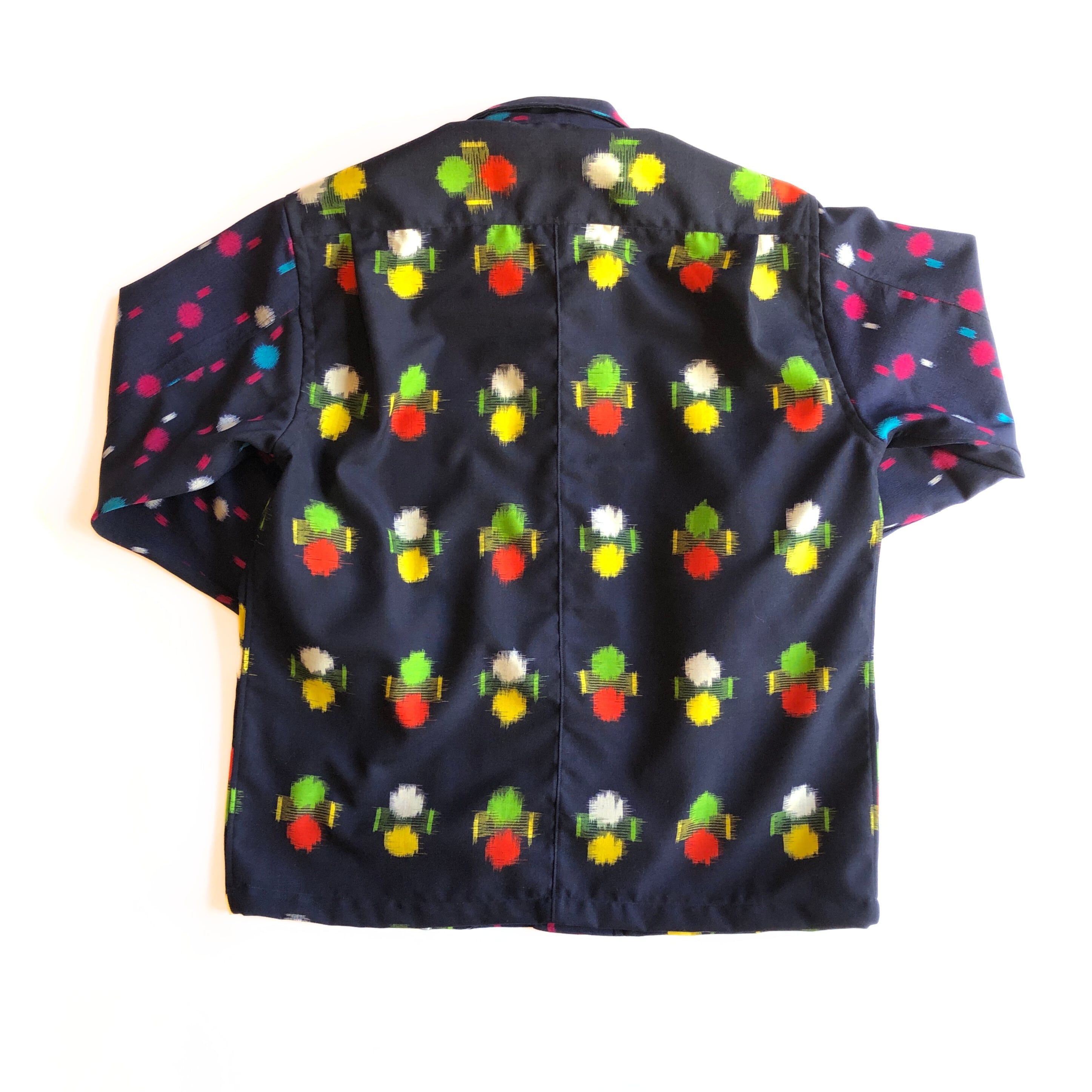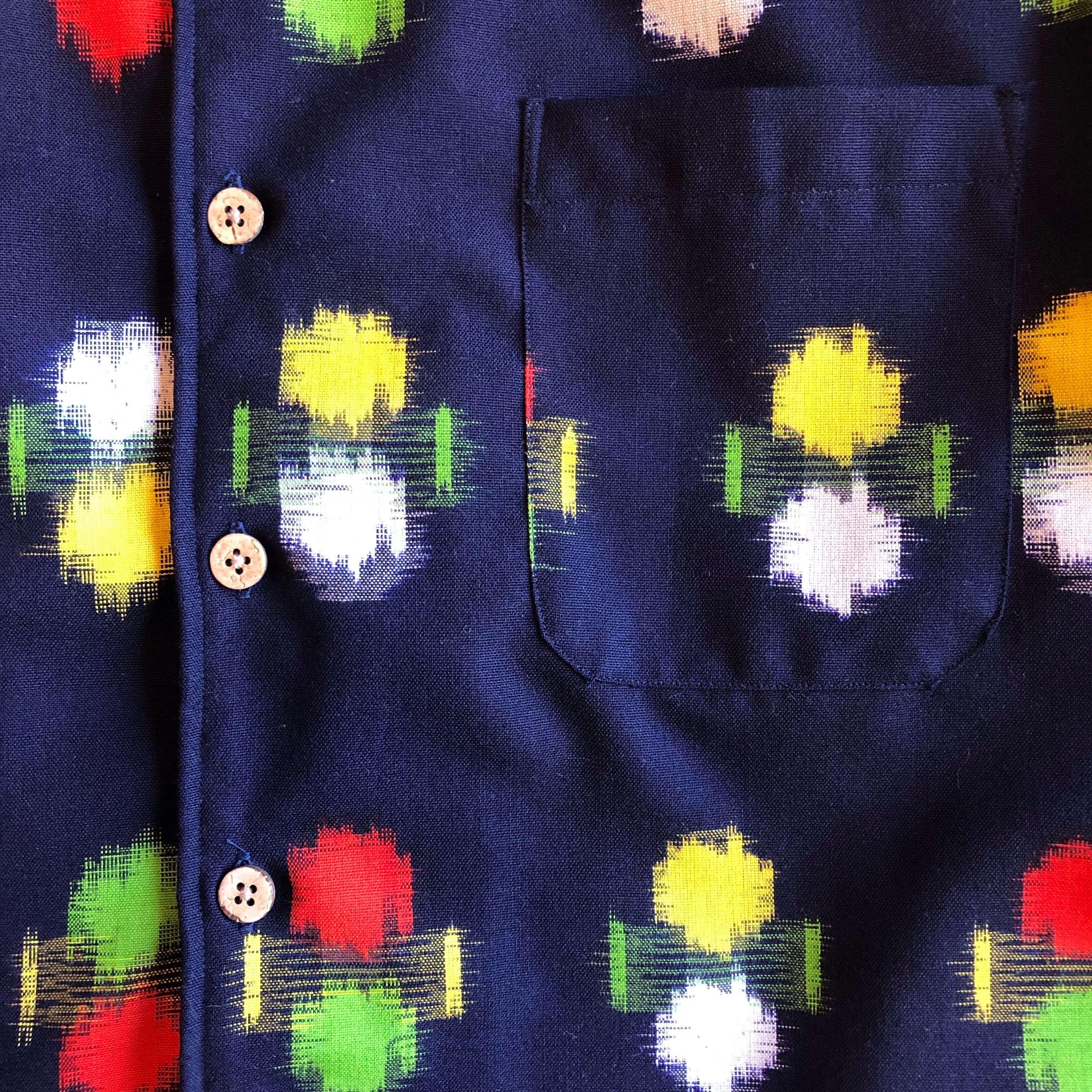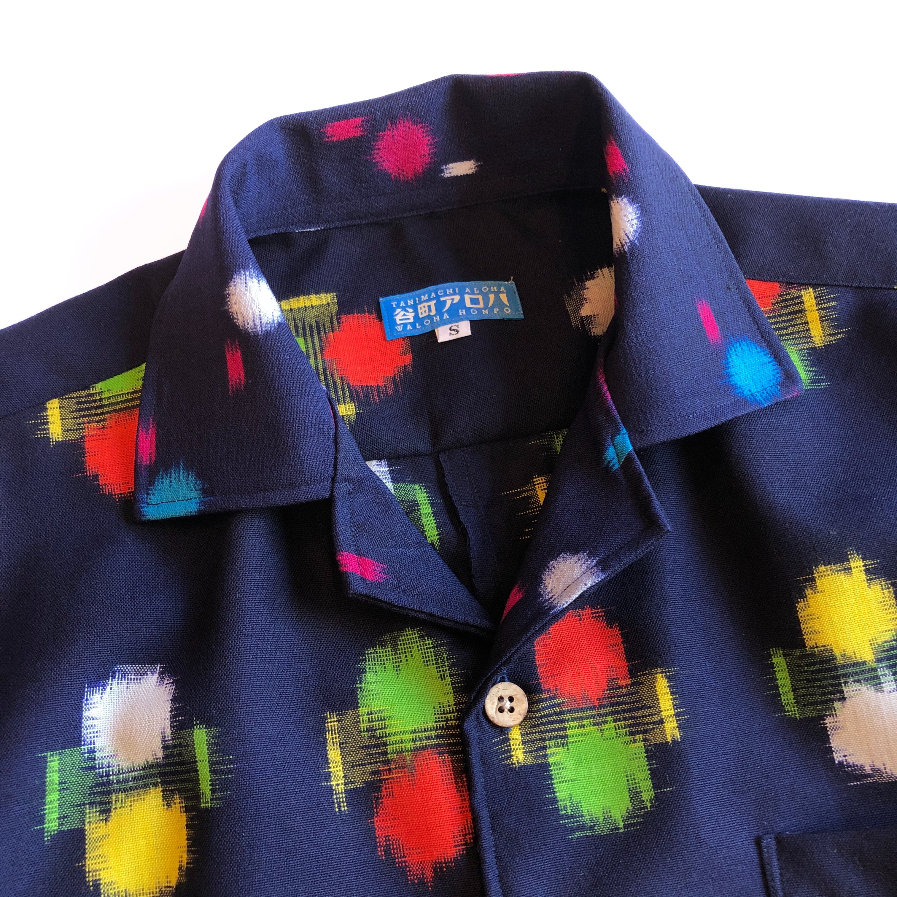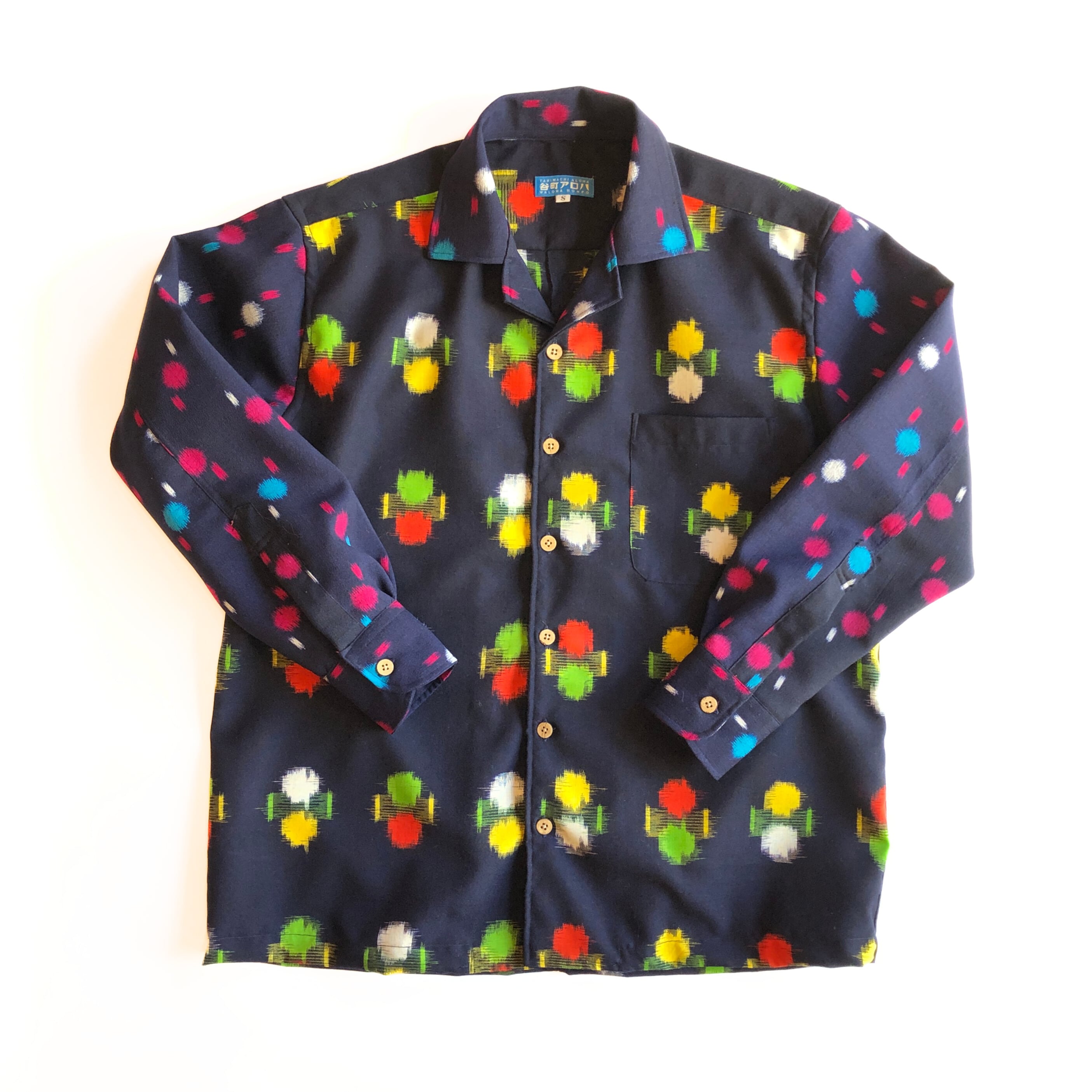 紺色ポップなウール地長袖アロハシャツ【S】