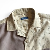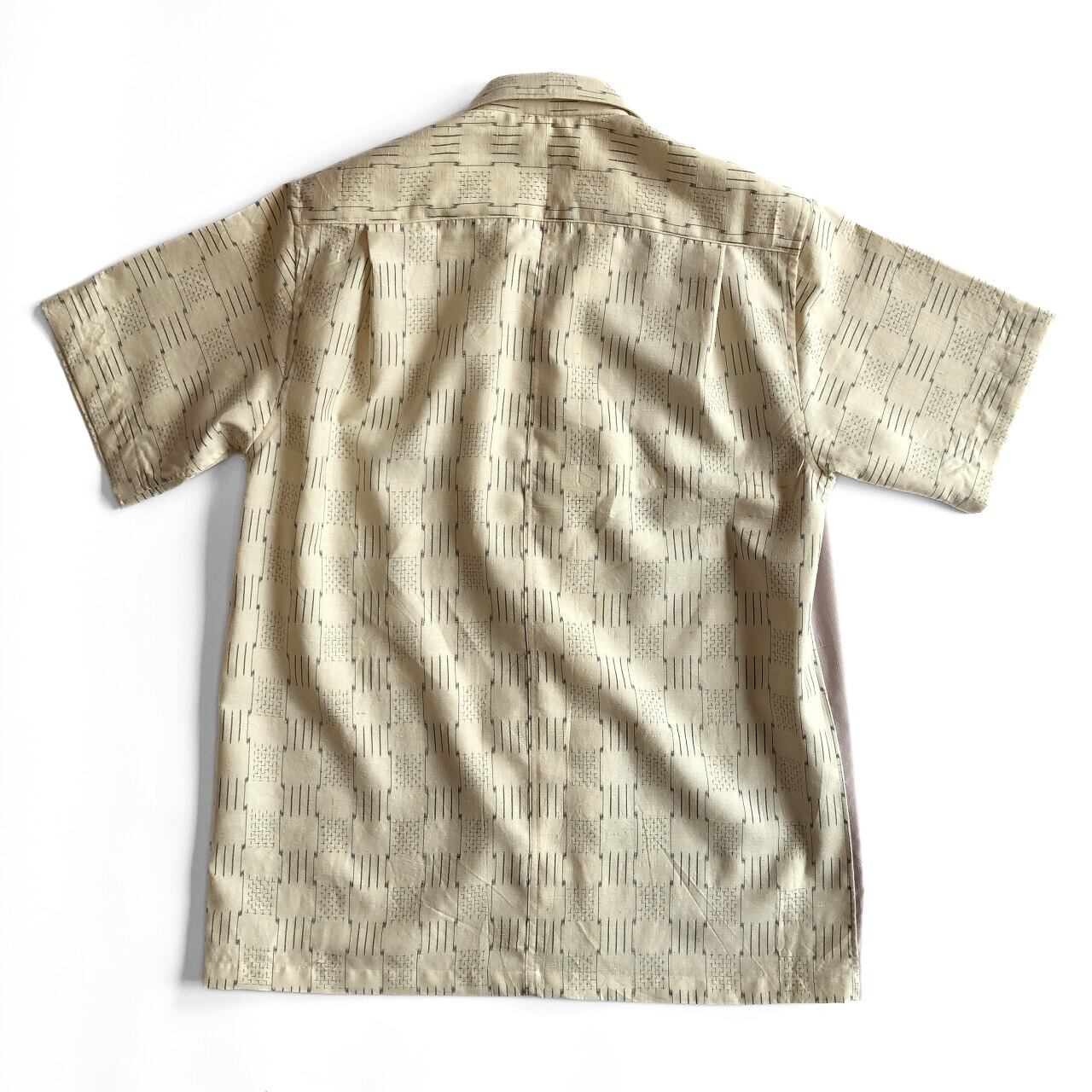 アイボリーと藤色の紬地アロハシャツ【L】
