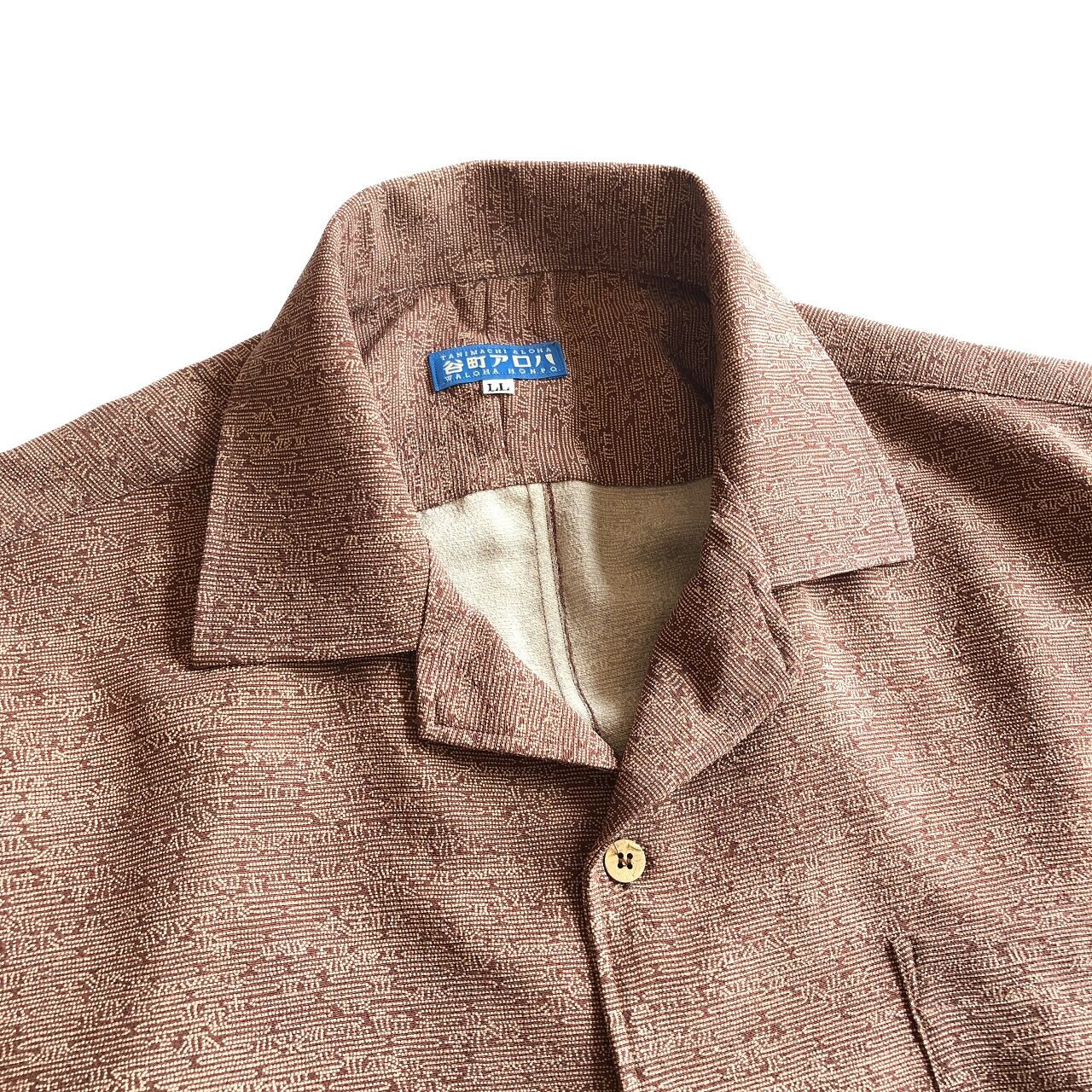 小豆色の型染小紋アロハシャツ【LL】