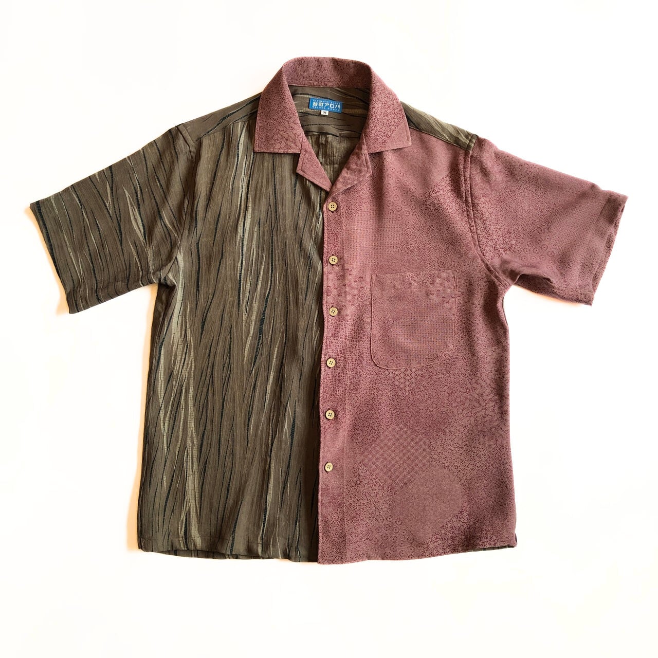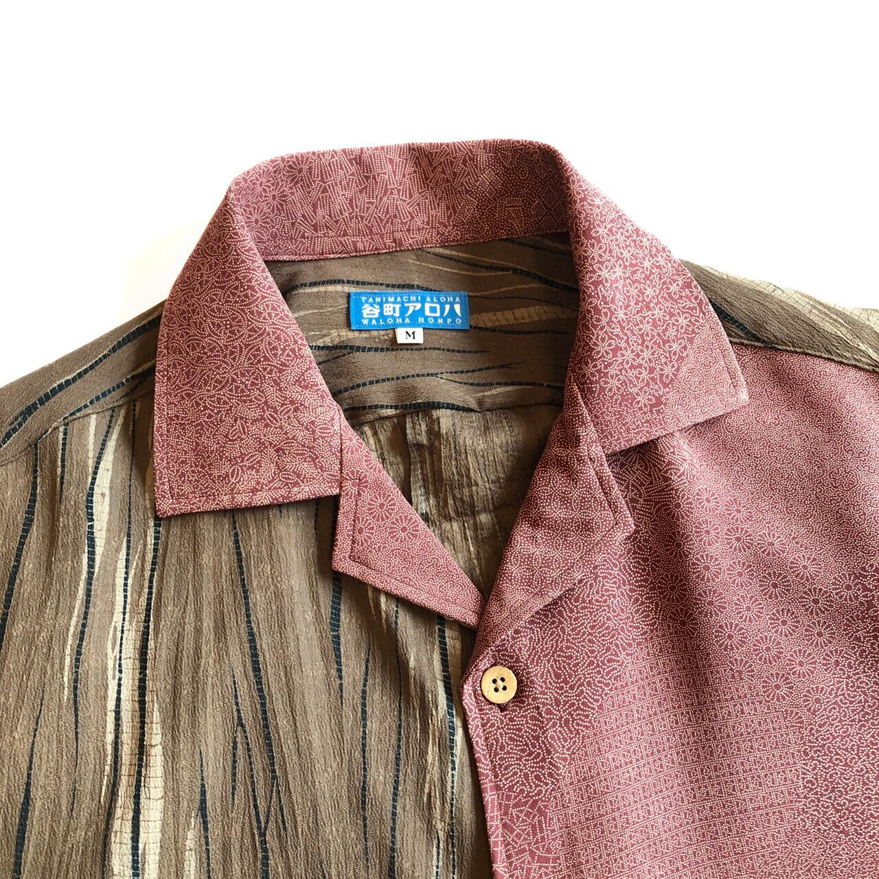 江戸小紋と有松絞りの正絹アロハシャツ【M】