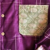 紫に白と水色の薄手の絣と草色にアイボリーの北欧風花柄紬を組み合わせました。