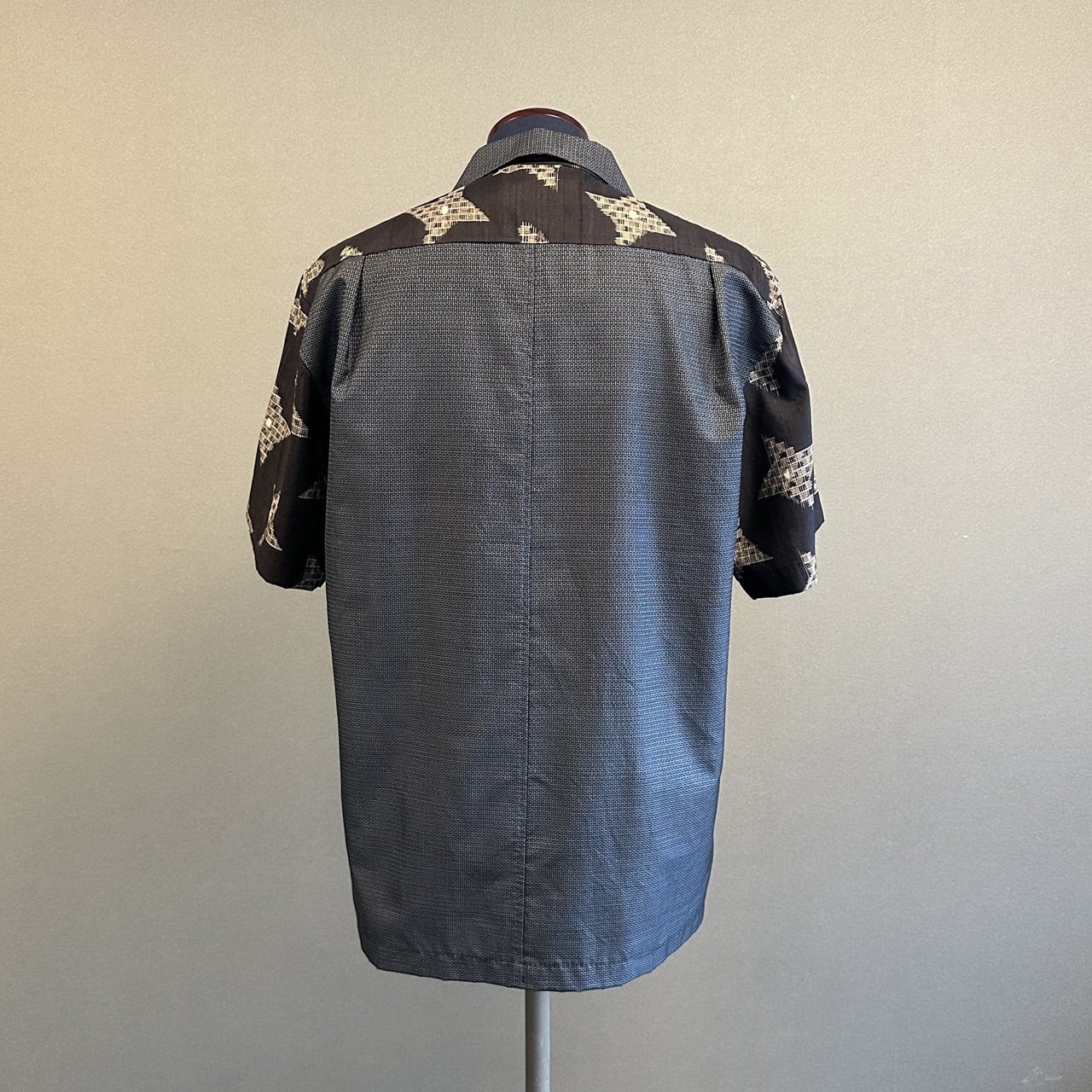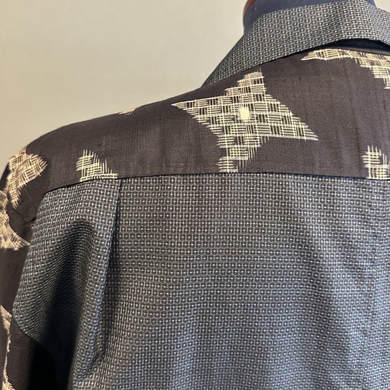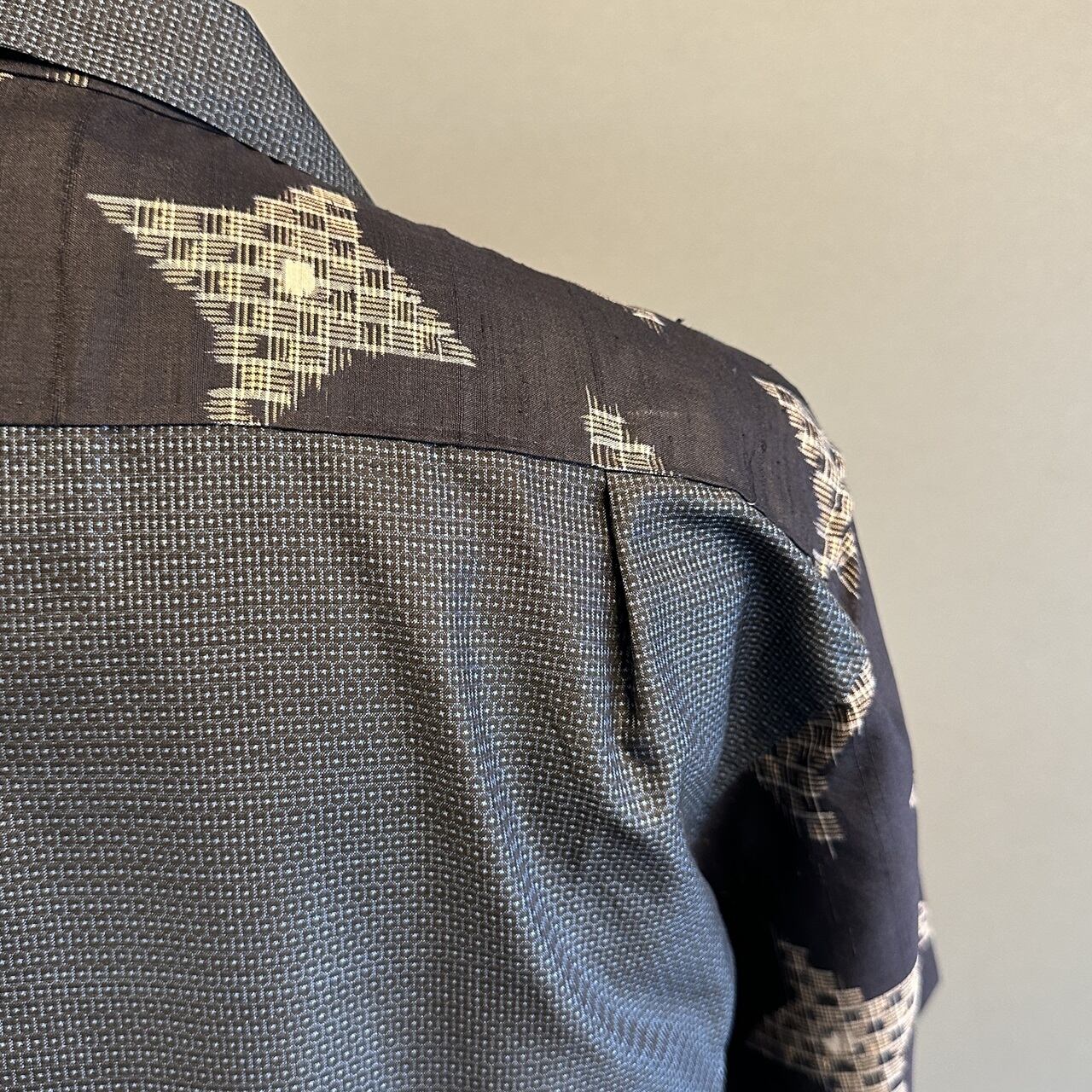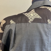 こちらのアロハに使われている着物は、2種類。紬、銘仙などの生地を切り返しで使っています。