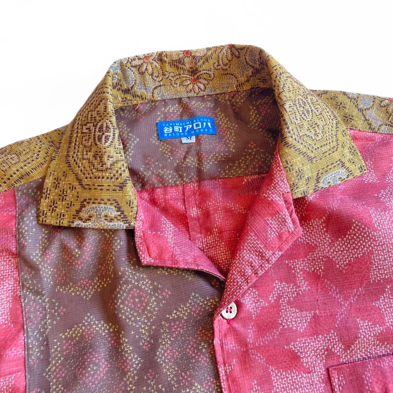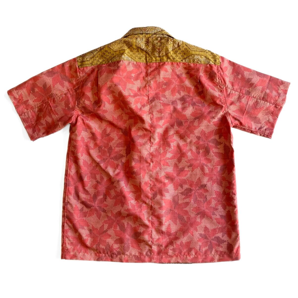 ピンクと茶色の紬地アロハシャツ【M】