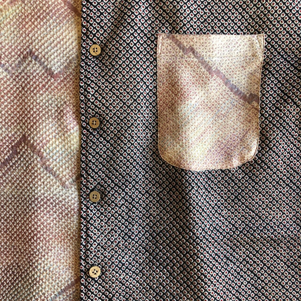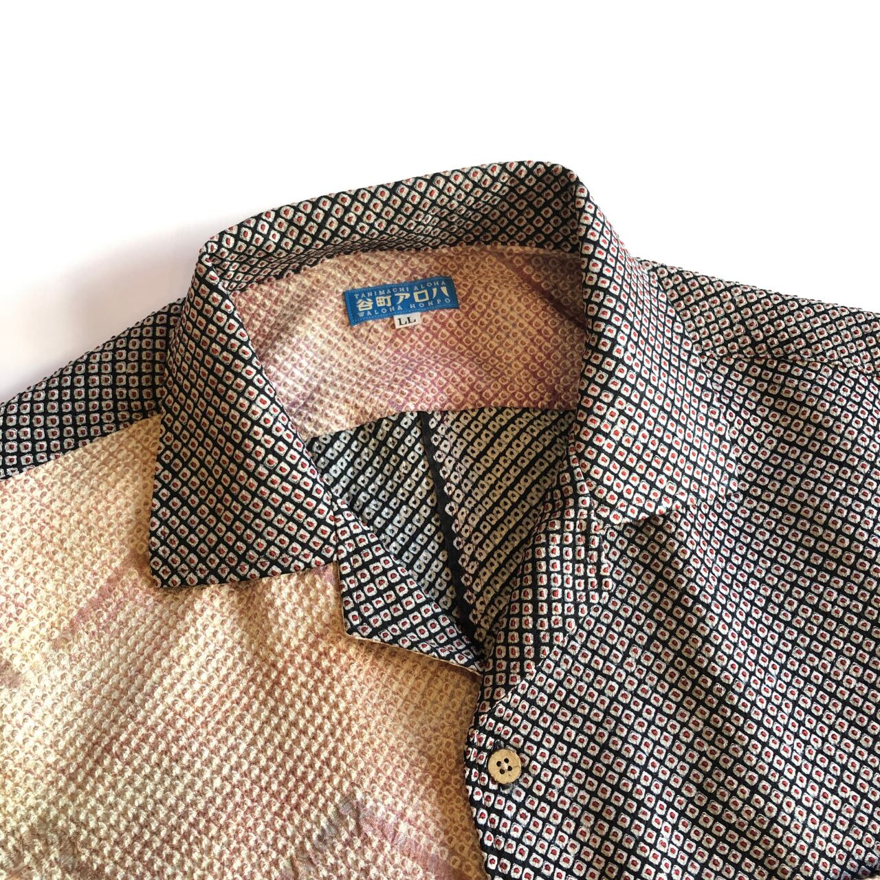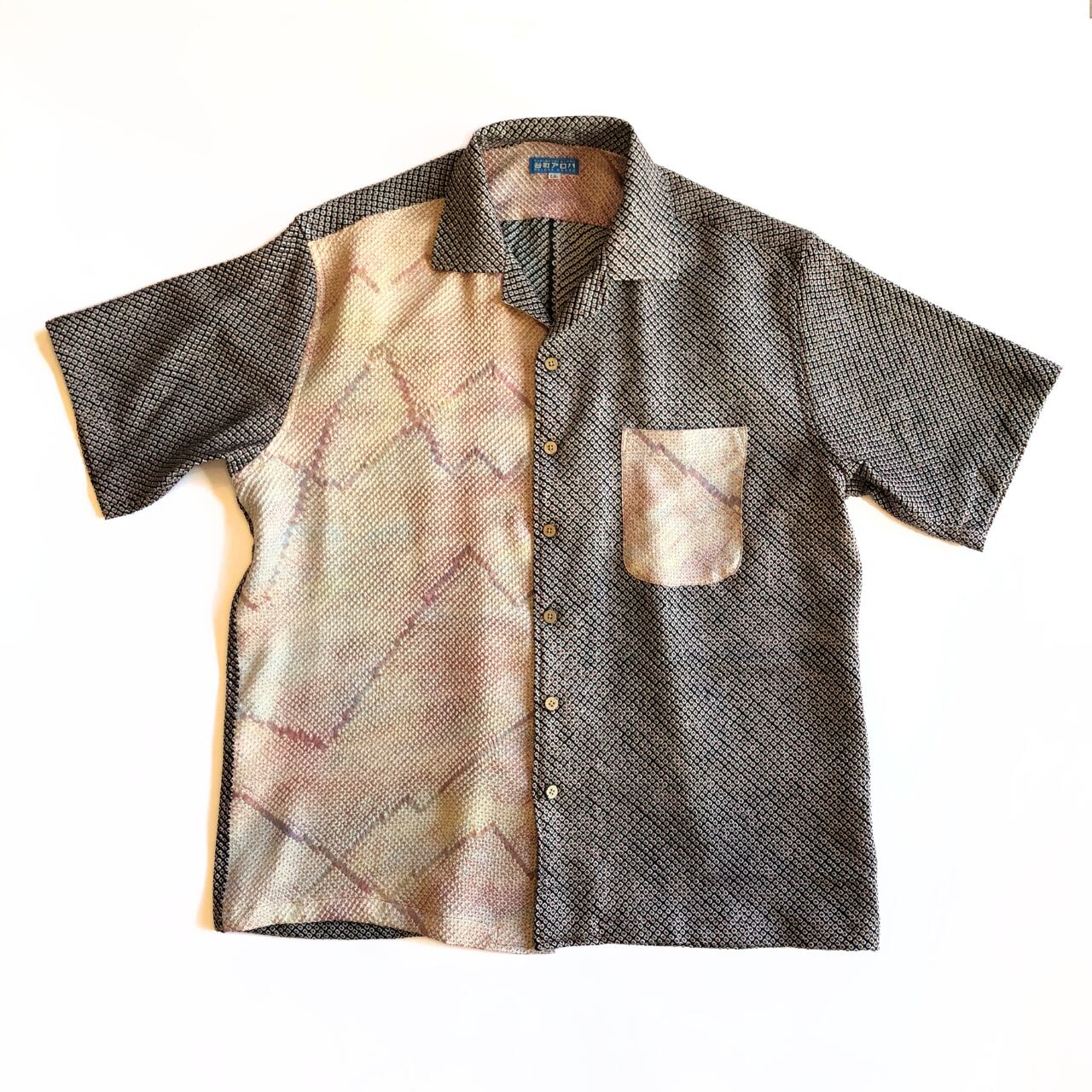 紺色と藤色ピンクの総絞りアロハシャツ【LL】