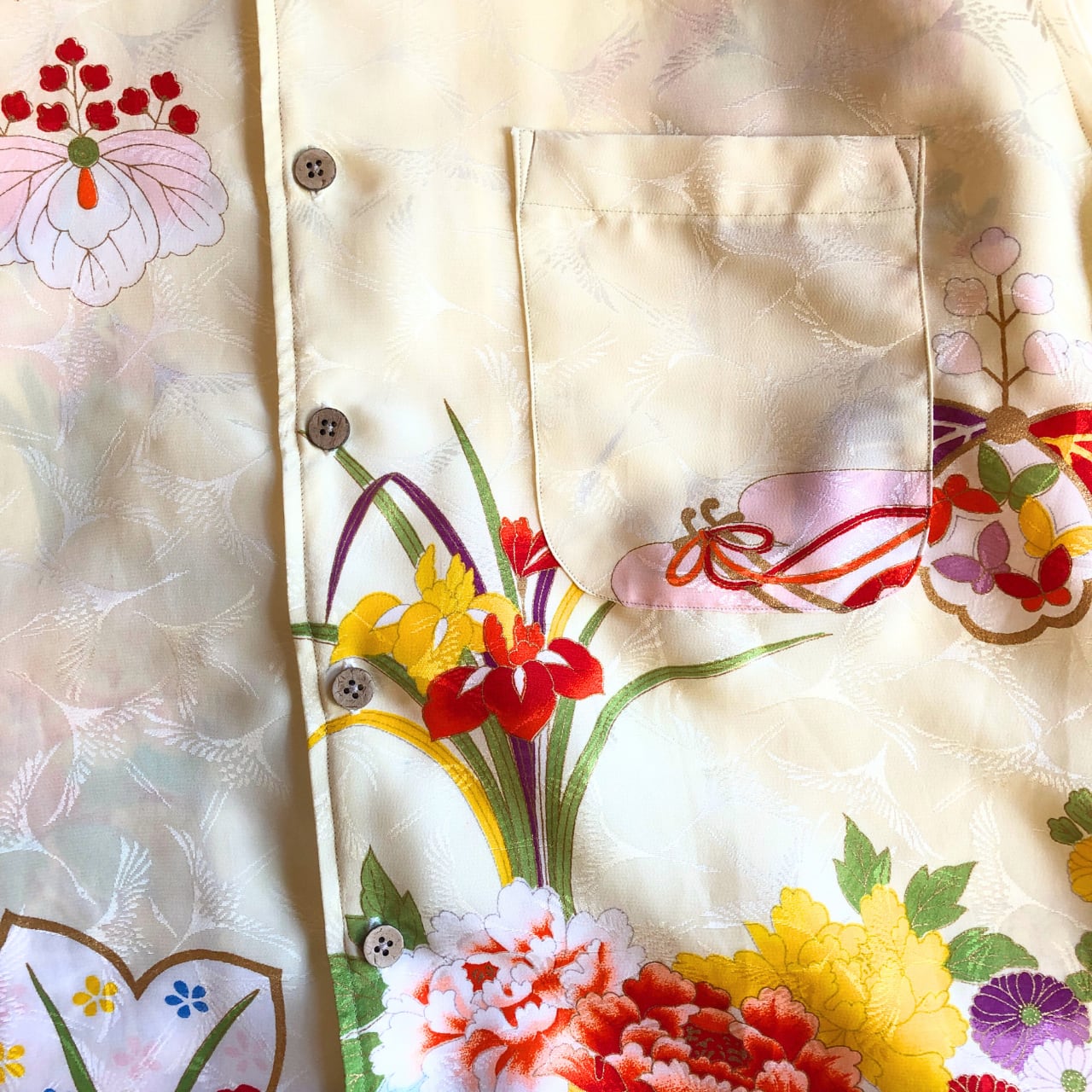 明るく華やかな柄行でパッと目を惹く1枚です。
